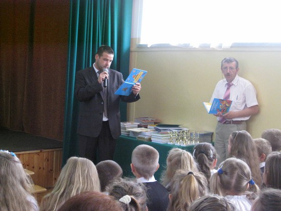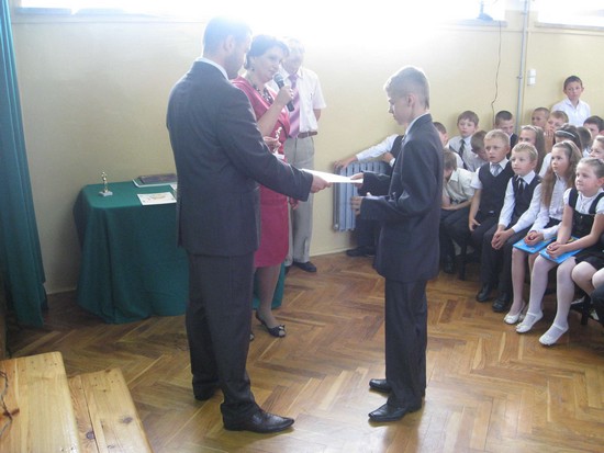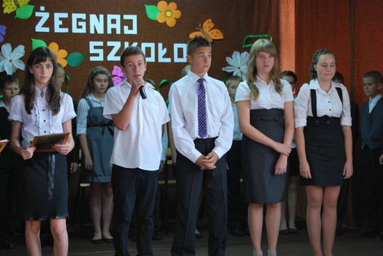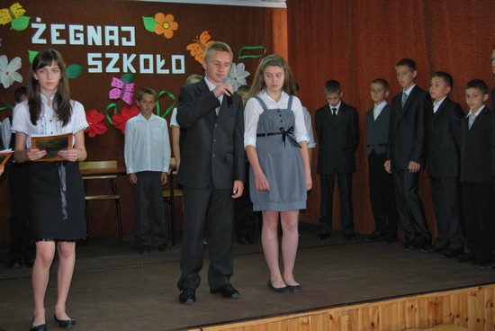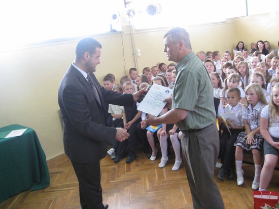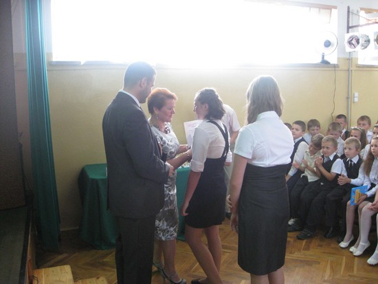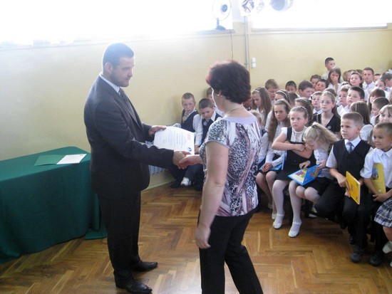 Następnie głos zabrał dyrektor szkoły pan Dariusz Węglowski, który w swoim przemówieniu posumował krótko kończący się rok szkolny. Pogratulował Uczniom i Nauczycielom wielu sukcesów w konkursach przedmiotowych, artystycznych i zawodach sportowych. Podziękował również Rodzicom za ogromne zaangażowanie w roku szkolnym i pomoc w wielu przedsięwzięciach w tym w uroczystości nadania imienia szkole w maju. Dyrektor również pogratulował uczniom z klasy VI wysokiej średniej na Sprawdzianie, życzył Im sukcesów w gimnazjum oraz złożył wszystkim życzenia słonecznych i bezpiecznych wakacji.