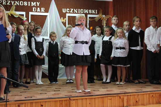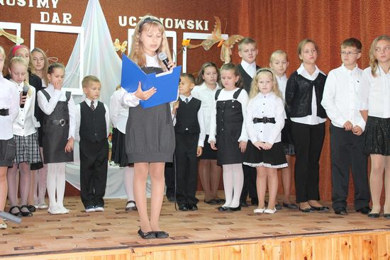 Dzień Edukacji Narodowej był szczególnie podniosłym świętem w naszej szkole. Cała uroczystość odbyła się na szkolnej sali teatralnej. Piękny program artystyczny przygotowały p. Mirela Kiełbasa i p. Bernadeta Pabian. Nad oprawą muzyczną czuwał p.  Waldemar Szlosek.