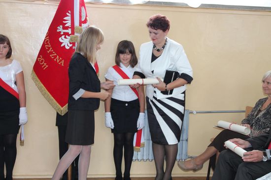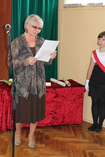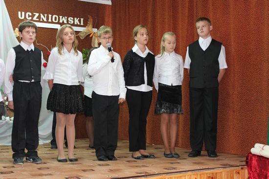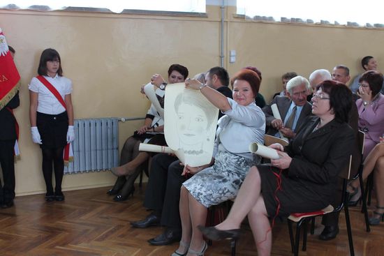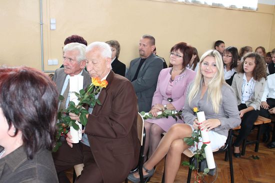 Ze uczniowskich ust padło wiele ciepłych słów, podziękowań i życzeń skierowanych do Dyrektora szkoły, Nauczycieli i Gości, wśród których znaleźli się emerytowani dyrektorzy i nauczyciele szkoły – p. Kazimierz Szlosek, p. Czesław Osak, p. Kazimiera Wąż oraz przedstawiciel Urzędu Miejskiego w Dąbrowie Tarnowskiej – p. Krystyna Kazek – Starszy Inspektor Zespołu Obsługi Szkól i Przedszkoli.