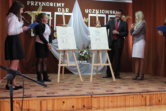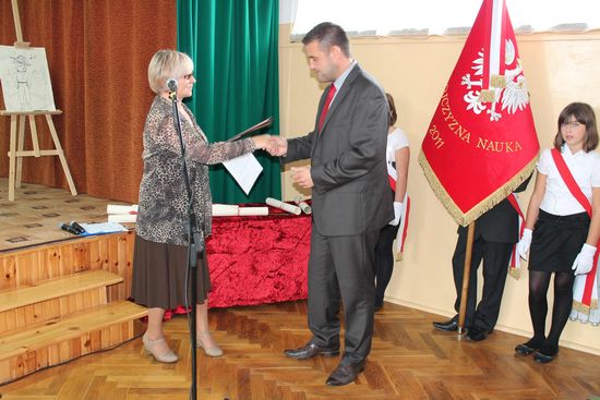 Po zakończonej części artystycznej, wręczeniu kwiatów i okolicznościowych portretów Nauczycielom i Gościom  głos zabrał dyrektor szkoły – p. Dariusz Węglowski. W swoim przemówieniu jeszcze raz powitał przybyłych Gości oraz życzył zebranym czerpania satysfakcji z jakże trudnego w obecnych czasach zawodu nauczyciela. Podziękował za dotychczasowy wkład pracy, życzył dalszych sukcesów i zadowolenia z podejmowanych działań.