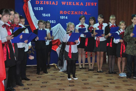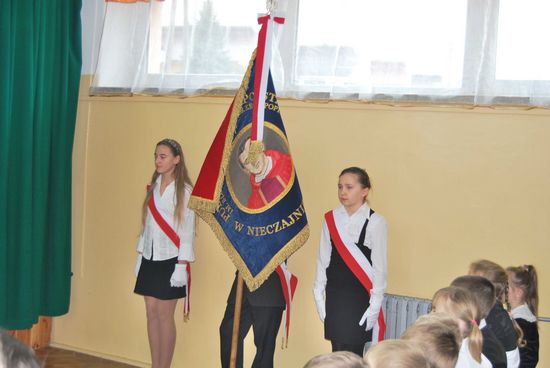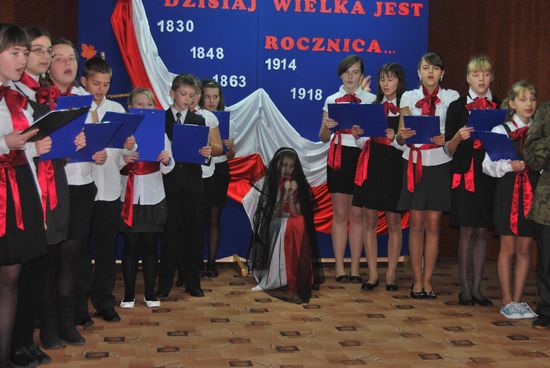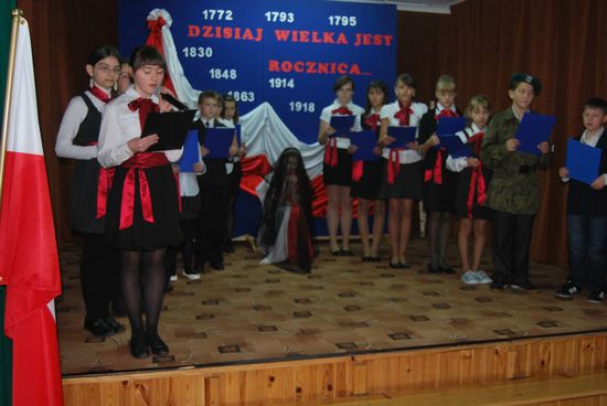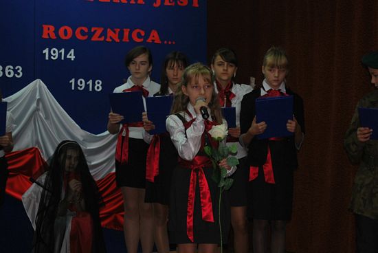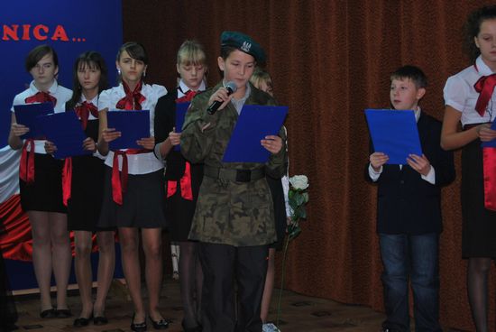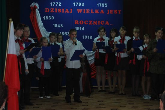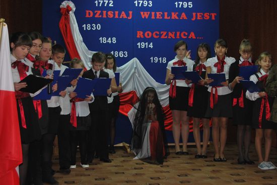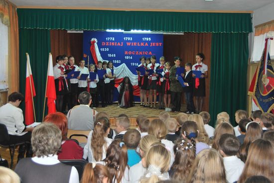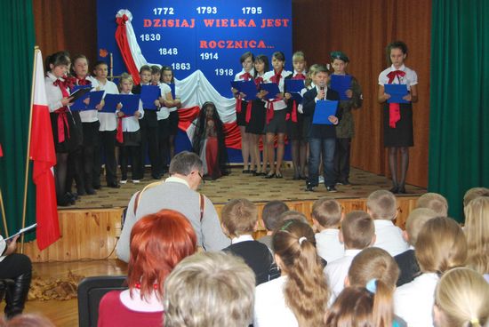 W naszej szkole 10 listopada o godzinie 9 rano w sali teatralnej odbyła się uroczysta patriotyczna akademia na okoliczność 93 Rocznicy Odzyskania Niepodległości przygotowana przez uczniów klasy VI i V pod kierunkiem pani Renaty Sojka. W organizację uroczystości włączyło się kółko wokalno – muzyczne prowadzone przez pana Waldemara Szloska oraz kółko teatralne, którego opiekunem jest pani Kazimiera Sipior.