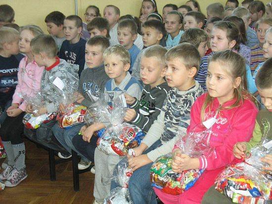 I w tym roku Mikołaj odwiedził naszą społeczność szkolną dokładnie 6 grudnia, pamiętając przy rozdawaniu prezentów o wszystkich uczniach, nauczycielach i pracownikach szkoły. Niecierpliwie powitały go wierszami i piosenkami dzieci z klas I-III, przygotowane przez swoich wychowawców: p. Irenę Klich, p. Mirelę Kiełbasę, p. Kazimierę Sipior oraz p. Waldemara Szloska (oprawa muzyczna). Do dekoracji sali teatralnej zaproszono także p. Krystynę Wenc. Mikołajowi pomocą służyli rodzice ze Szkolnej i Klasowych Rad Rodziców, za co serdecznie dziękujemy. Grzecznie czekamy za wizytę Świętego za rok…