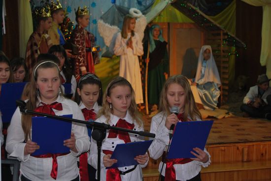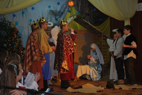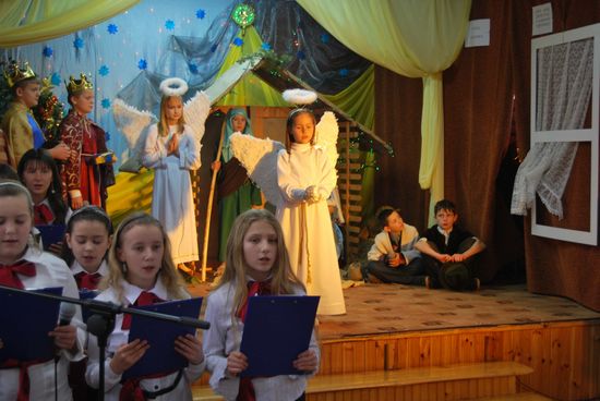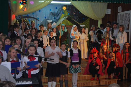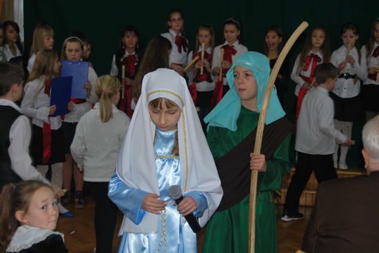 To motto szkolnej uroczystości bożonarodzeniowej w naszej szkole. Piękne przedstawienie jasełkowe nawiązywało do wydarzeń historycznych i współczesnych zdarzeń, które towarzyszą życiu dzisiejszego człowieka.