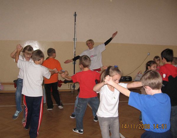 Zajęcia doskonale integrują uczniów, bawią i uczą różnych układów tanecznych oraz ruchu scenicznego.