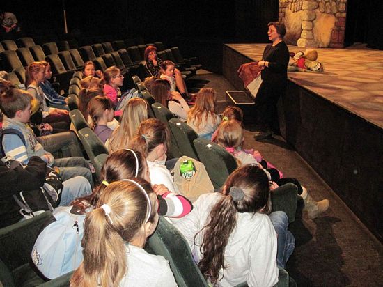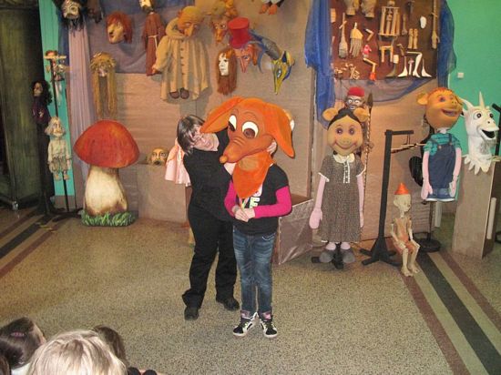 Po zakończonym spektaklu uczniowie spotkali się z paniami Iloną Słaboszowską-Buchner i Barbarą Cieślak – aktorkami, które poprowadziły ciekawe warsztaty, podczas których przybliżyły uczniom wykorzystywanie masek, lalek i pacynek w teatrze oraz śpiewu i ruchu scenicznego.