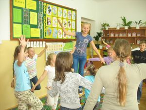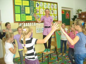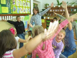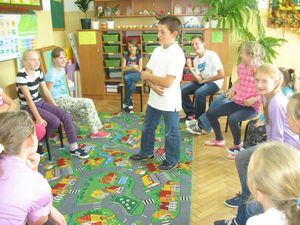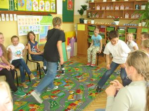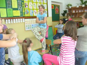 Odwiedziliśmy ich, by podpatrzeć, co też robią na zajęciach. Z pewnością nie mogą się na nich nudzić. Zabawy integracyjne, gry dramatyczne, ćwiczenia oddechu, szczęki, podniebienia miękkiego, języka, warg - wszystko w formie zabawowej - całkowicie „pochłaniają” ich uczestników. Ponadto ćwiczą wymowę, wspólnie układają wierszyki - rymowanki. Oto niektóre z nich: