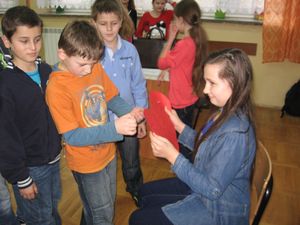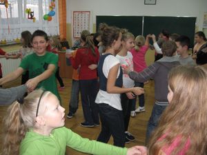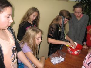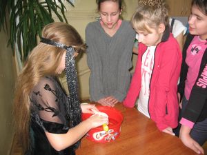 z klasy V. Największym zainteresowaniem cieszyły się lanie wosku oraz wbijanie pinesek w serduszka z imionami chłopaków lub dziewczyn. Po wróżbach wszyscy tańczyli przy dobrej muzyce. Czas szybko mijał przy zabawie.