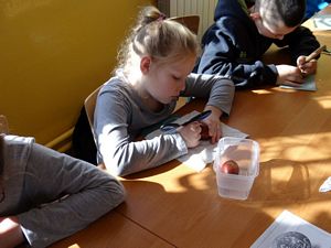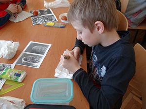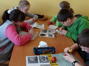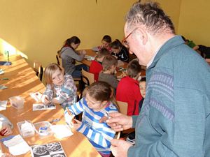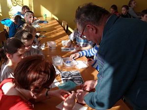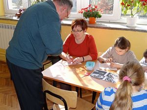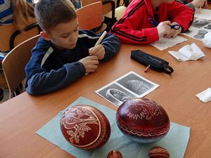 Przybył on w dniu 10. 03.2013 roku  do naszej szkoły na zaproszenie grup regionalnych: „Praktyków” i Terenowców”. Przywiózł  ze sobą własnoręcznie wykonane rzeźby przedstawiające  wizerunki świętych i motywy przyrodnicze. Wszystkim się one podobały. Należy  wspomnieć, że pan Banaś wykonał i ofiarował szkole płaskorzeźbę jej patrona – bł. ks. Jerzego Popiełuszki, która znajduje się w gablocie wraz ze sztandarem. Jednakże głównym celem spotkania z panem Zdzisławem były warsztaty, na  których zapoznał zgromadzonych z różnymi technikami zdobienia jaj wielkanocnych, a w szczególności z metodą „skrobania”. Następnie uczestnicy warsztatów mieli możliwość wykazania się  swoimi umiejętnościami   w skrobaniu pisanek . Trzeba przyznać, że nieźle im to wyszło.