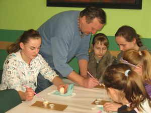 Podczas zajęć w OSK uczestnicy poznali krótki rys historyczny Ziemi Dąbrowskiej, pojęcie kultury ludowej. Poznali informacje o stroju ludowym Krakowiaków Wschodnich, zdobnictwie użytkowym, konkursach zalipiańskich „Malowana Chata”. Mogli też podziwiać eksponaty charakterystyczne dla kultury Powiśla. O tym wszystkim ciekawie opowiadał pan Paweł Chojnowski. Natomiast w DDK miała miejsce część praktyczna. Wycieczkowicze, po zapoznaniu się z przykładami dąbrowskich pisanek, sami przystąpili do zdobienia jajek. Wykonywali tradycyjne pisanki pod kierunkiem doświadczonych i utytułowanych artystów z Dąbrowy: Ewy Łazowskiej, Edmunda Wilka i Stefana Strońskiego.